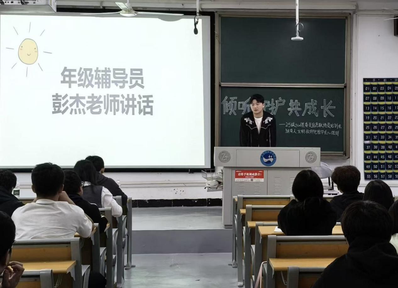 10月30日中午,材料与环境工程学院心理部在致远楼210教室举办了主题为“倾听·守护·共成长”的心理培训会。25级心理委员、信息联络员参会,学院党总支副书记王新辉、心理咨询中心刘嘉颖老师、25级辅导员彭杰老师及心育专干李雷震老师出席会议。会议伊始,志愿者介绍了本次培训的主题与参会嘉宾。随后,李雷震老师围绕大学生常见心理问题展开讲解,明确心理委员的“三重角色”——观察者、支持者与桥梁者,并进一步阐述信息联络员的职责与心理工作四项基本原则。...