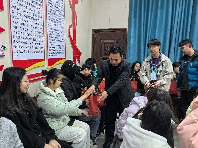 活动伊始,党总支书记钟勇、副书记王新辉发表讲话。结合考研冲刺阶段的备考特点与实际需求,既分享了针对性的备考方法与应考技巧,又送上了真挚的祝福与殷切的期望,鼓励同学们以坚定的信念、饱满的热情和沉稳的心态迎战考研,不负长久以来的付出与坚守。随后,两位领导共同为在场学子发放暖心礼包。紧接着,辅导员刘佳俐针对考前作息调整、考场规则须知、心理压力调节等内容作出细致叮嘱,帮助学子们缓解焦虑情绪。活动最后,现场设计了“送你一朵小红花”与沙瓶画DIY活动环节,同学们亲手制作专属沙瓶画,互赠小红花与祝福话语,在轻松愉悦的氛围中舒缓备考压力,现场暖意融融、氛围热烈。