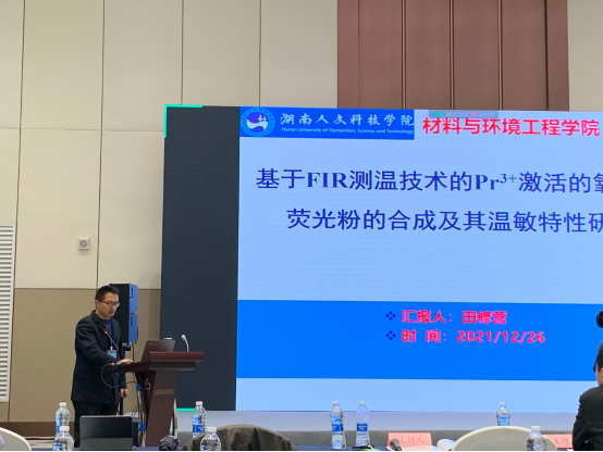 材料与环境工程学院院长文瑾教授、专任教师田修营副教授参加了本次大会。文瑾为06先进结构陶瓷材料论坛分会场的会议主席。田修营在06分会场上做了题为“基于FIR测温技术的Pr3+激活氧化物荧光粉的合成及其温敏特性研究”的学术报告。首先介绍了娄底的地理位置和湖南人文科技学院材料与环境工程学院近年来的发展,然后介绍了其近三年来的研究工作。报告后,主持人为其颁发邀请报告证书。他表示,通过本次大会,能够与很多同行专家进行交流和学习,受益匪浅。(一审:田修营;二审:文瑾;三审:谭峰亮)