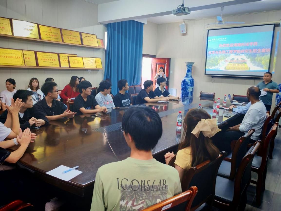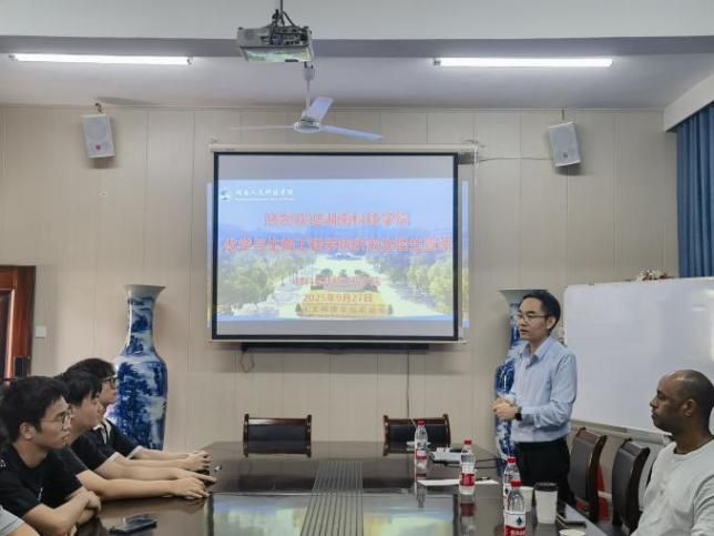 2025年9月27日,湖南科技学院化学与生物工程学院院长覃佐东一行三人莅临我院开展硕士研究生招生宣讲,宣讲会于多闻楼410举行,材料与环境工程学院学院院长文瑾、副院长陈红军及学院有考研意向的学生共同参加此次宣讲。
