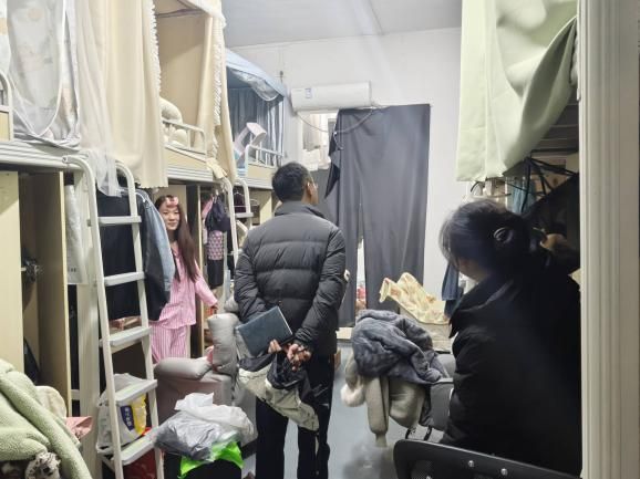 在低年级寝室,老师们重点关注新生适应与习惯养成,引导同学们尽快融入集体、端正学习态度、共建文明寝室;在高年级寝室,老师们聚焦学业提升、实习就业与毕业论文推进,为考研学子加油鼓劲,为求职同学支招解惑,传递学院的支持与期盼。一句句贴心问候、一次次耐心解答,让寝室内暖意融融,师生间的距离在轻松交流中不断拉近。同学们纷纷表示,将牢记师长嘱托,严守宿舍纪律,勤奋刻苦学习,团结友爱互助,共同打造整洁、文明、温暖的寝室家园。