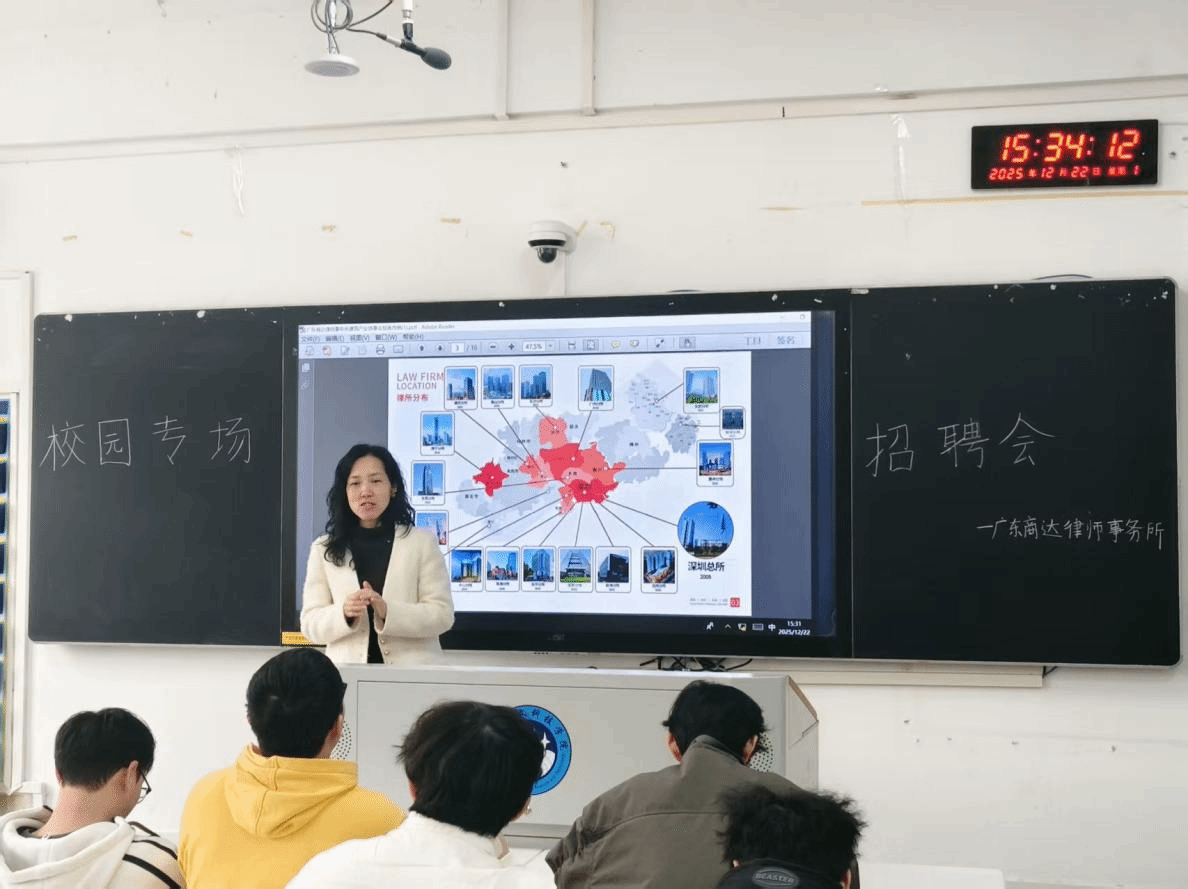 为有志于法律行业的青年学子搭建就业桥梁,输送优质人才。12月22日下午,广东商达律师事务所受邀到法学院到进行校园招聘。