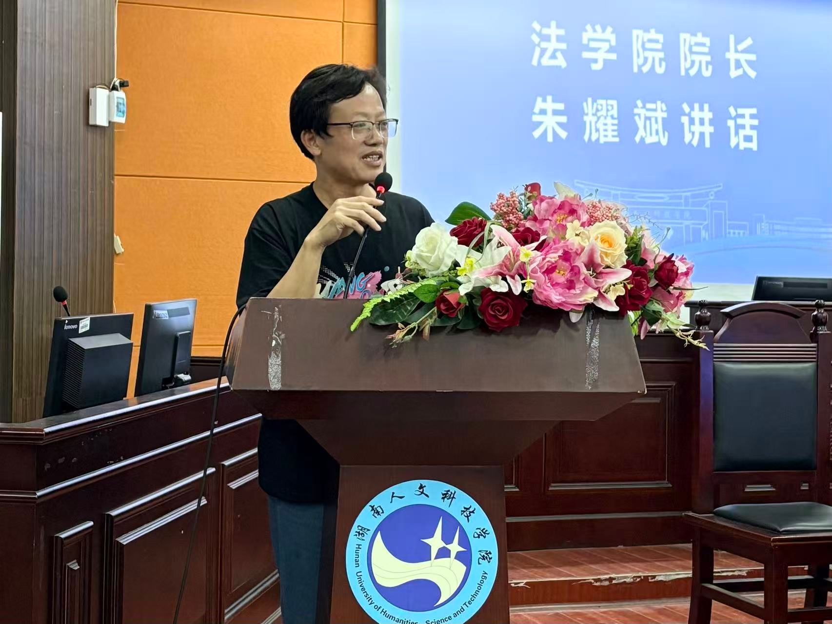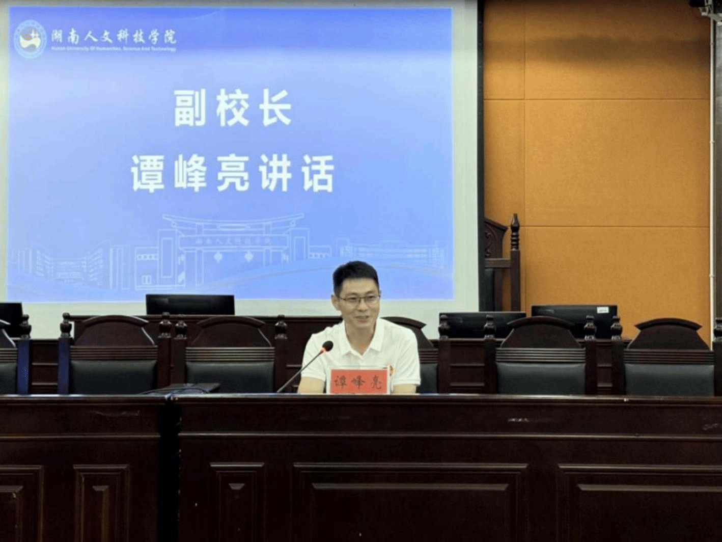 党委委员、副校长谭峰亮的讲话以“回归常识、坚守本分、胸怀梦想”为主题展开。他娓娓道来,引导同学们踏实为学、诚实做人,树立高远志向,努力成长为德法兼修的高素质人才。他祝愿全体新生学业有成,身心健康,度过充实而美好的大学时光。