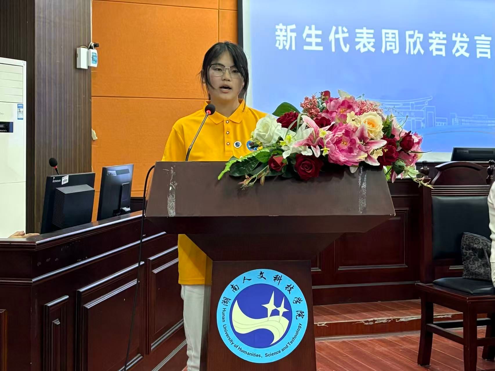 老生代表张佳璇结合自身经历,分享了大学学习与生活的体会,鼓励新生积极参与专业实践和社会服务,在实际行动中深化对法学知识的理解,做到学以致用、服务社会。新生代表周欣若在发言中表达了步入大学的欣喜与憧憬,并表示将以校训为指引,勇敢面对挑战,不断成长进步,努力书写无愧于时代的青春篇章。