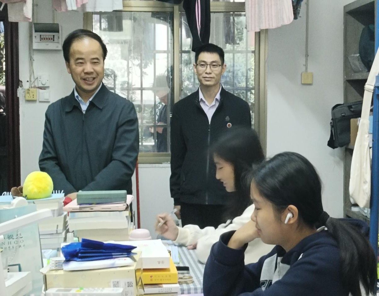 走访过程中,盛明科详细询问同学们入学后的学习适应情况,结合大学生成长规律,对同学们提出了殷切希望。他强调,大学学习需完成从“被动接受”知识到“主动探索”知识的转变,鼓励同学们善用图书馆、网络资源等平台拓宽视野,提升自我价值,主动调整心态,积极融入集体。