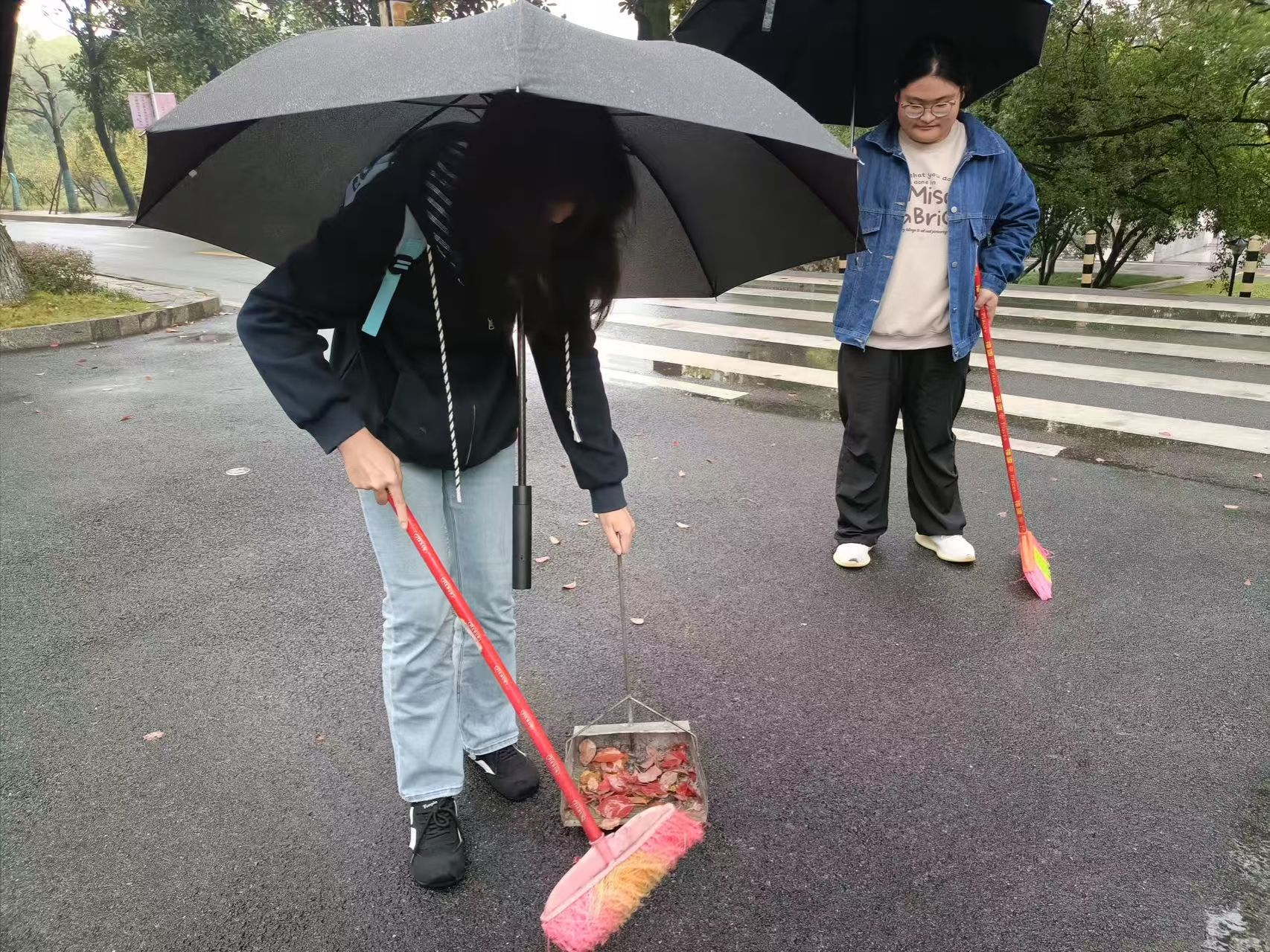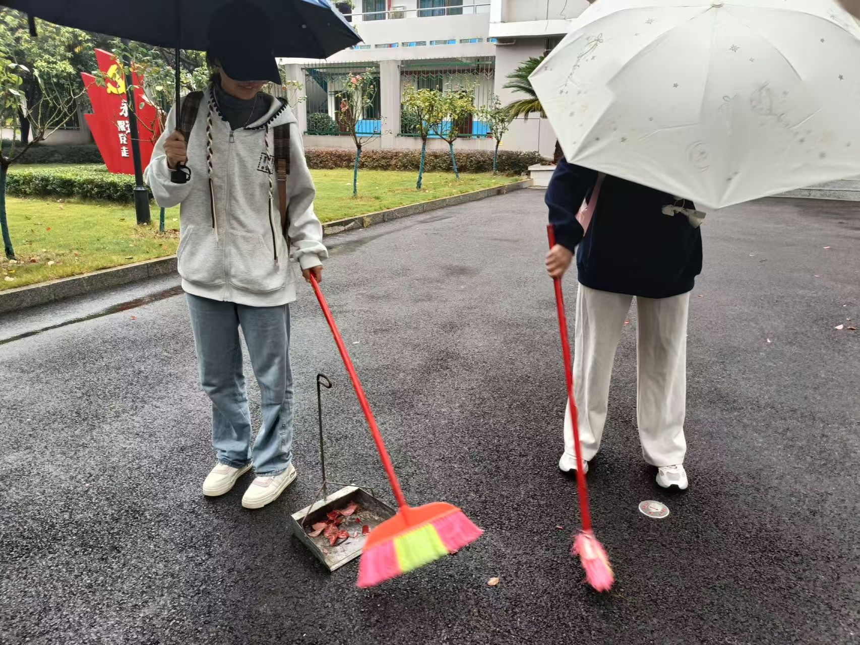 活动中,同学们分工明确。有的手持扫帚清扫花田旁路径上的落叶与杂物,有的俯身认真拾捡隐藏在草丛深处的纸屑。大家以不怕脏、不怕累的劲头默契配合,不放过任何卫生盲区。经过一番辛勤劳作,花田区域焕然一新,校园环境愈发清新雅致。