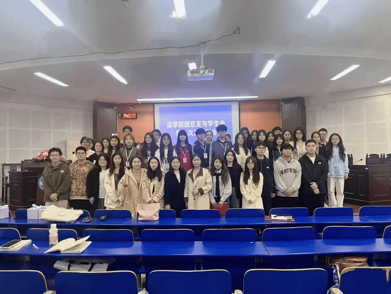 法学院于10月28日在致远楼202教室召开新一届团总支学生会换届传承暨工作部署会议。学院党总支副书记邓南南、学工办主任陈玲、全体辅导员及团学会全体成员参加会议。