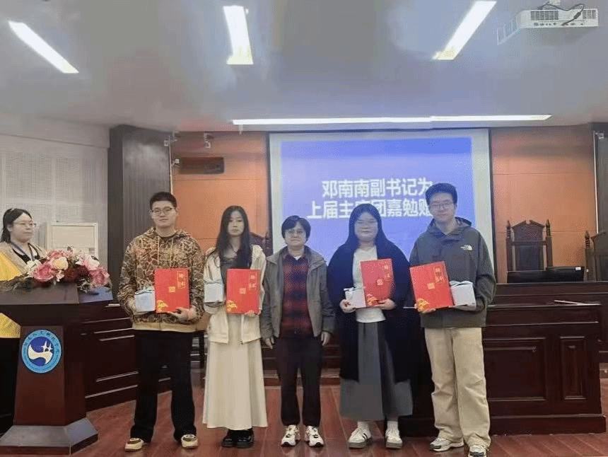 随后,党总支副书记邓南南为上届主席团成员颁发纪念品并合影,对上届团学会的工作表示肯定,同时鼓励新一届学生干部平衡好学业与工作,努力成长为全面发展的优秀人才。