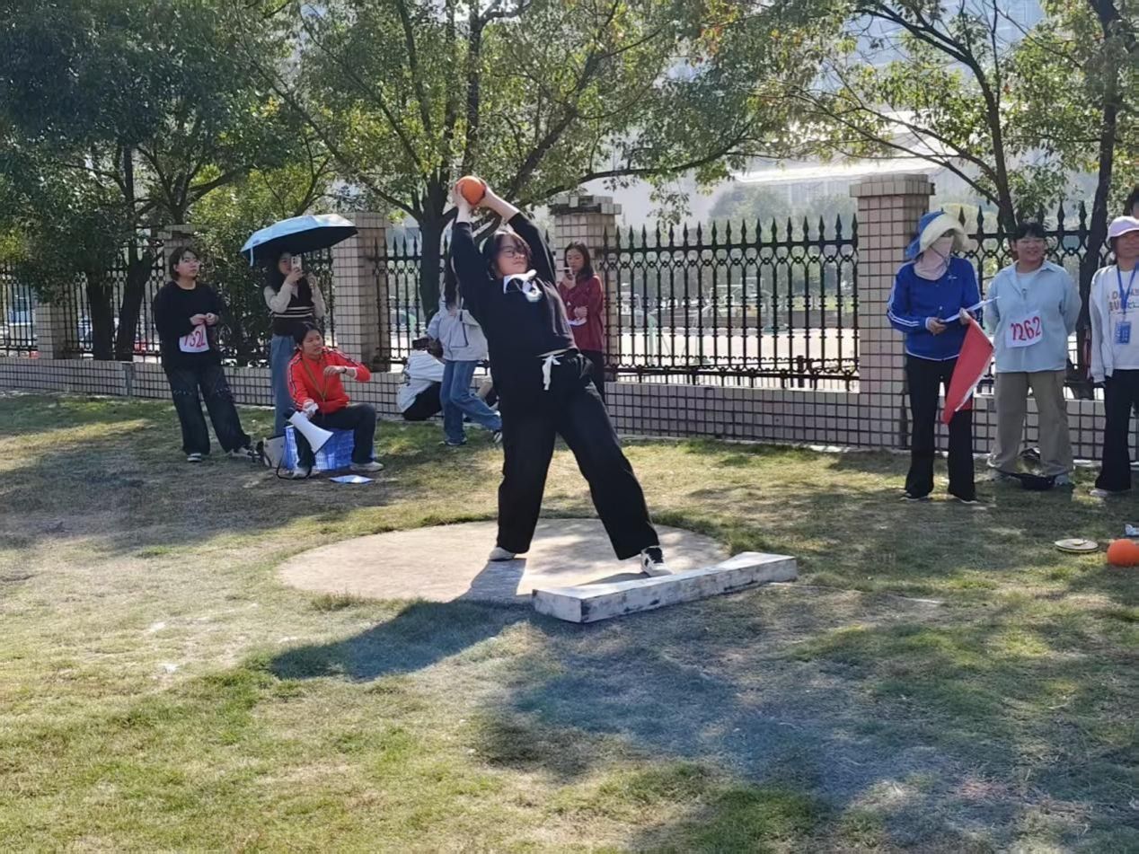 比赛现场气氛热烈,众多选手严阵以待。杨周紫煊同学站在投掷区,眼神坚定,全神贯注。她双手紧握实心球,调整好姿势,凭借着精准的投掷技巧,凝聚力量。只见她奋力一掷,实心球在空中划出一道优美的弧线,稳稳落地。在后续的几轮投掷中,她始终稳定发挥,每一次投掷都展现出奋发的力量,不断刷新着自己的成绩。最终,她力克群雄,勇夺桂冠。