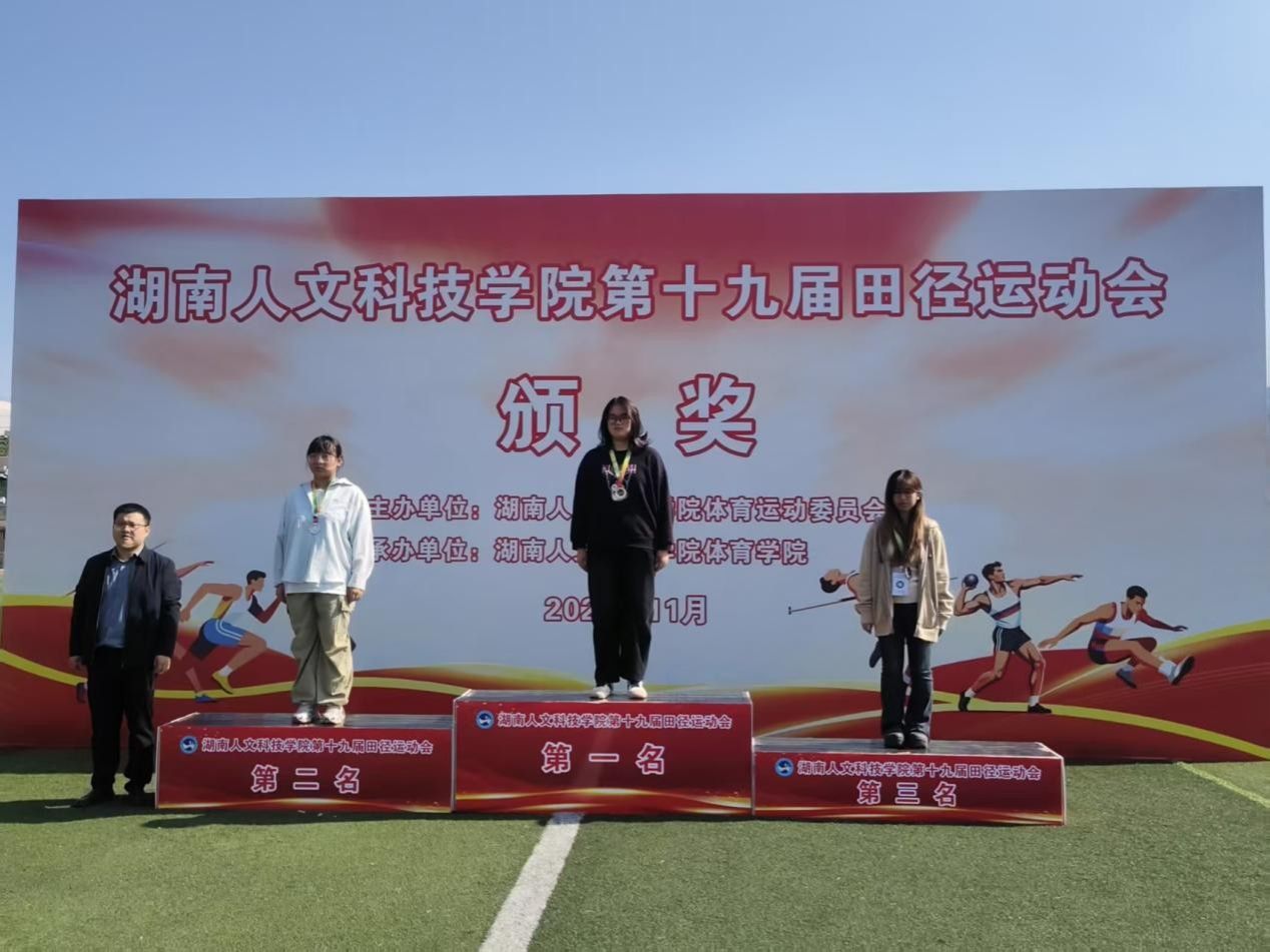 11月15日上午,湖南人文科技学院第十九届田径运动会的绿茵场上传来喜报,法学院杨周紫煊同学在女子组实心球投掷赛场上凭借她自身优异的运动素养荣获冠军,大放异彩。