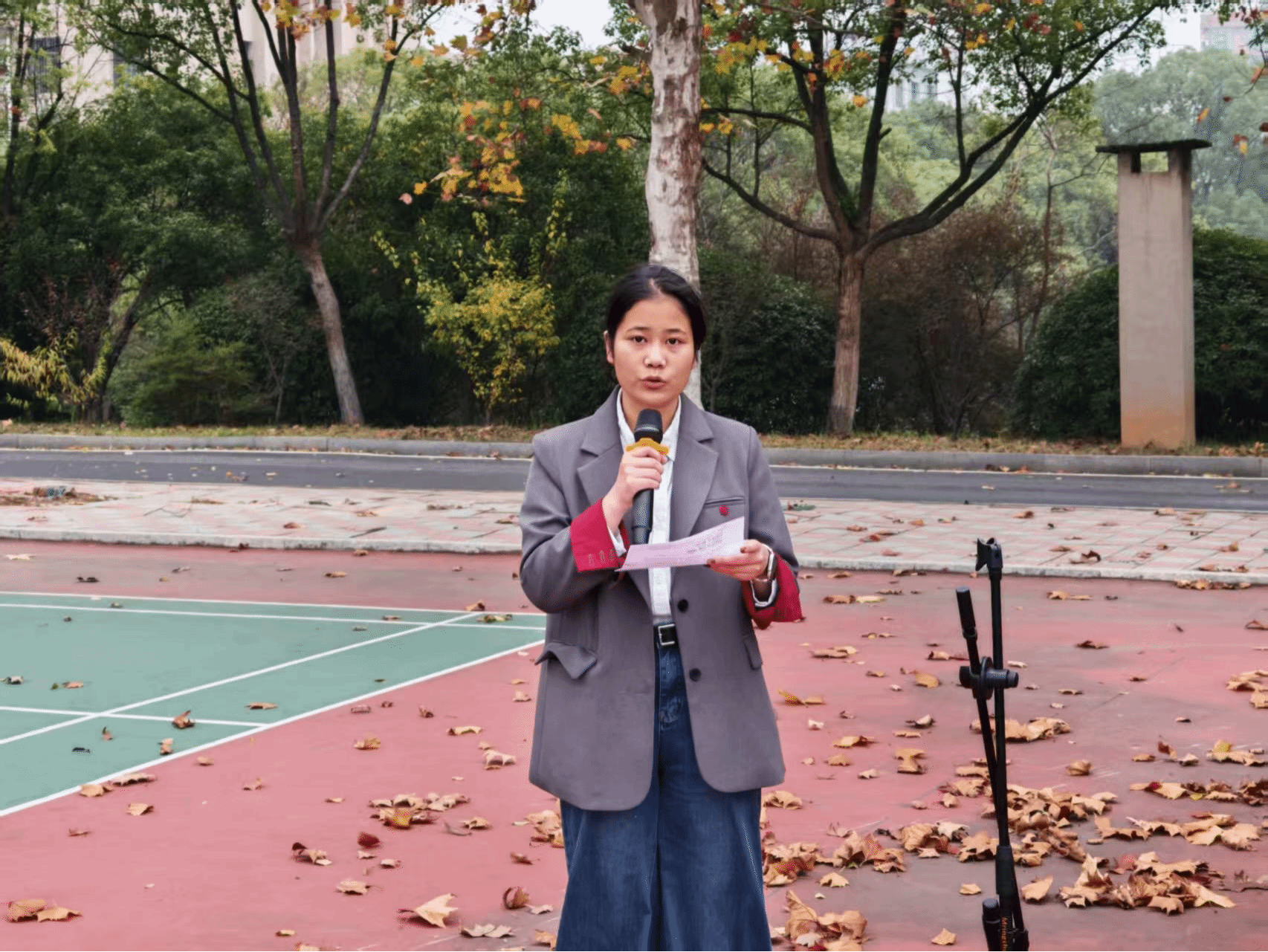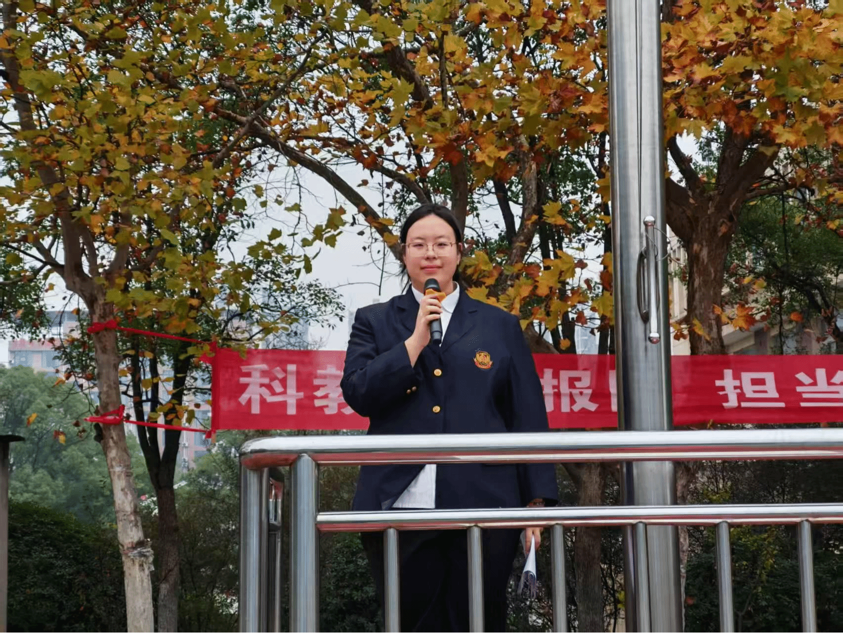 学生代表关欣瑞作国旗下演讲,倡议法学院学子弘扬法治精神,践行爱国情怀,勇做高素质法治人才。