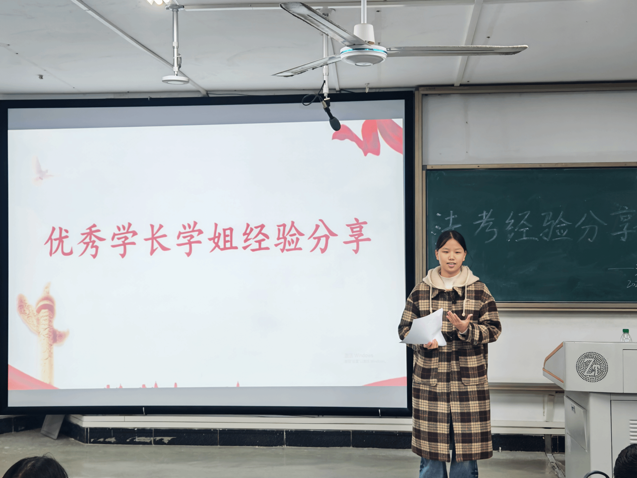 12月16日下午,法学院“高分领航 法考同行”法考经验分享会在致远楼301教室顺利举办。本次活动旨在帮助法学学子厘清备考思路、掌握科学方法、缓解备考压力,吸引了大批2023、2024级学生踊跃参与。学工办主任陈玲、学生会主席团成员与到场学子共同聆听了分享。