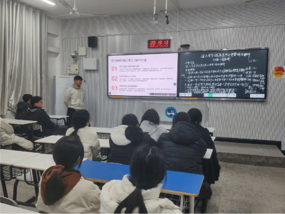 团课期间,各班级研读《深入学习习近平总书记关于志愿服务的重要贺信精神》文件,领悟志愿精神内核,助力营造全民参与志愿服务的浓厚氛围;学习《深入学习习近平总书记致高校的重要贺信精神》文件,明确“为党育人、为国育才”根本使命,坚定社会主义办学方向;研读《深入学习习近平总书记致青联学联大会重要贺信精神》文件,树立远大理想,明晰青年责任担当;组织观看《秉持贺信精神 携手构建人类命运共同体》《一封贺信 一份嘱托》《深悟贺信精神内涵 激扬青春力量勇担使命》三部视频,引导同学们深入理解贺信精神实质,深刻体会党中央殷切嘱托,凝聚奋进合力,激发担当热情。