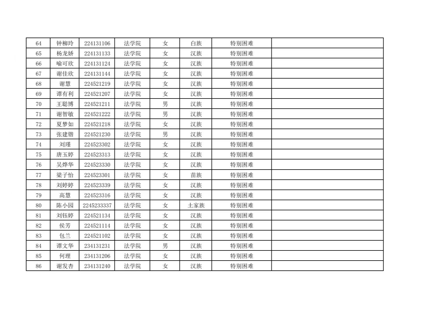 湖南人文科技学院2024-2025学年家庭经济困难学生名单汇总表