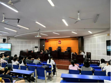 6月26日上午,为深入贯彻学习习近平法治思想,提高在校大学生法治意识和法律实务能力,探索法学教育新模式,依托湖南省“法学类创新创业基地”这一合作平台,湖南人文科技学院法学院与娄星区人民法院精心组织,将法庭审判搬进大学校园,在学校致远楼202模拟法庭公开审理两起侵害知识产权的案件,学校法学院120余名师生“零距离”观摩庭审。