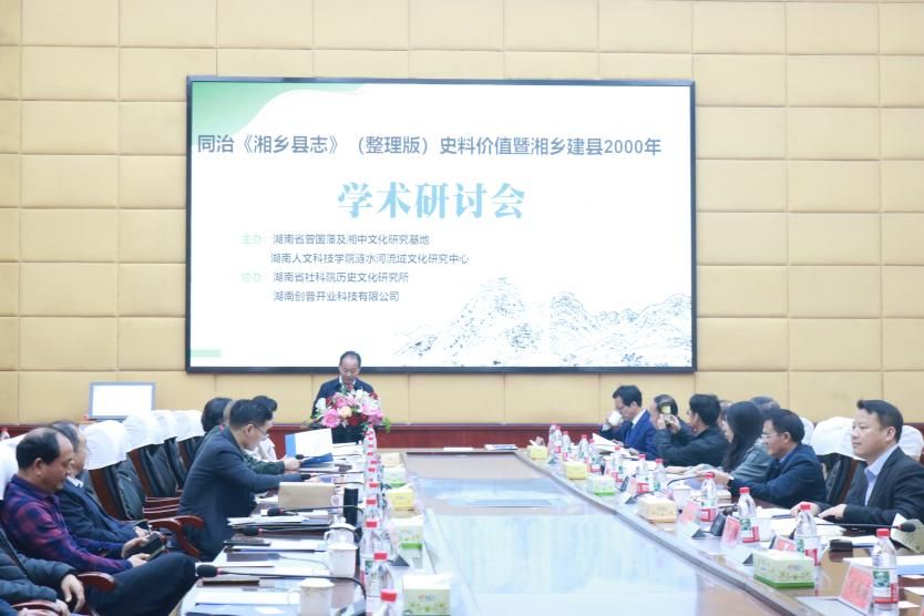 10月30日上午,同治《湘乡县志》(整理版)史料价值暨湘乡建县2000年全国学术研讨会在我校图书馆第一会议室举行,来自清华大学、中南大学、武汉理工大学、湖南科技大学的学者和地方文史专家六十余人参加了本次学术研讨会。本次研讨会由我校涟水河流域文化研究中心主任、湖南省曾国藩及湘中文化研究基地主办,湖南省社科院历史文化研究所和湖南创普开业科技有限公司协办。学校党委副书记朱强代表学校致欢迎辞,科研处主要领导、校内历史文化学者和教育学院历史学专业部分学生出席了本次学术研讨会。