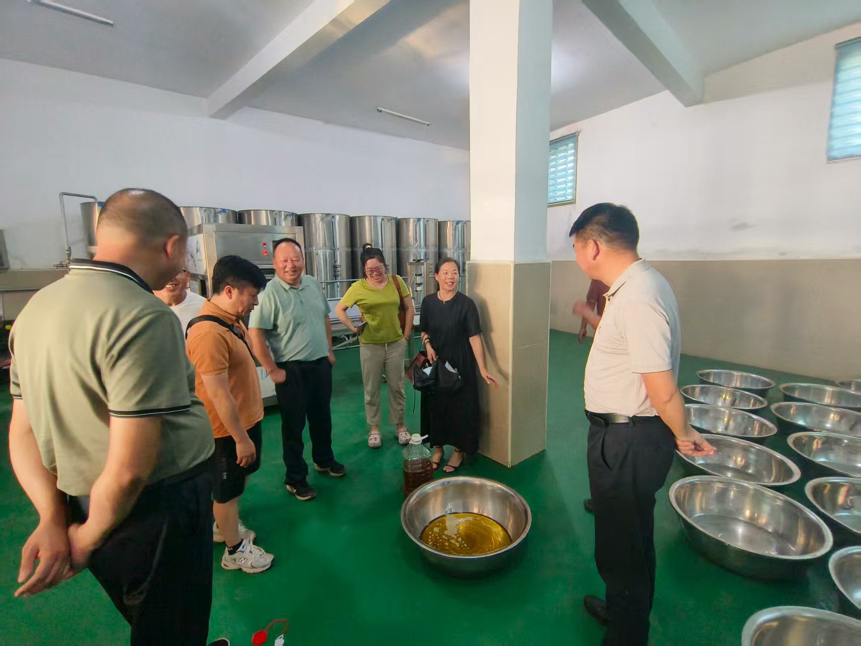 在驻村工作队和乡村干部带领下,考察组一行实地考察当地农业合作社、油茶基地,现场观看了油茶加工过程,从产品的质量、色泽、口感、包装以及有无质量隐患等方面进行了详细的了解。