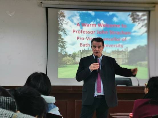 12月16日,英国巴斯斯巴大学副校长、牛津大学文学博士John Strachan 教授应邀在我校图书馆415学术报告厅举行“英国文学与研究”学术讲座,来自各个学院的师生到场聆听,现场座无虚席。