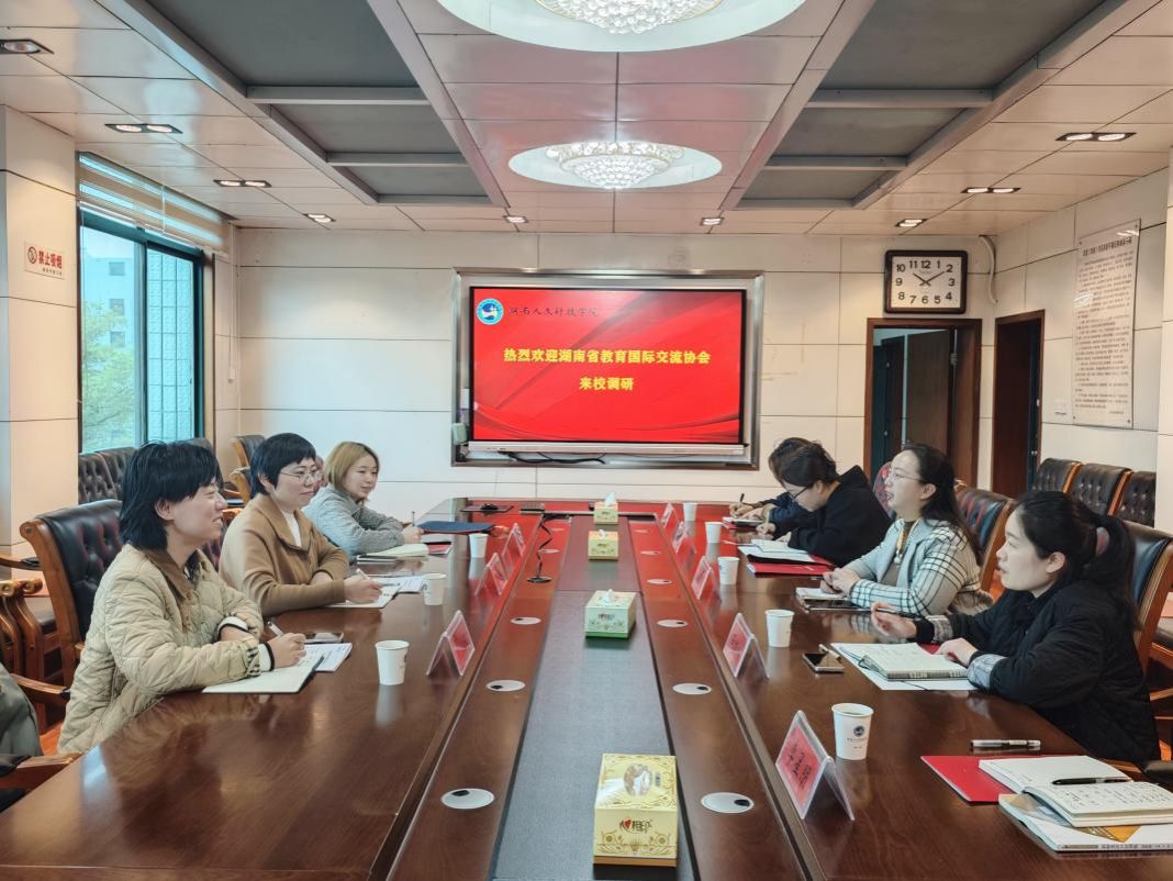 3月26日上午,湖南省教育国际交流协会副秘书长李美丽一行莅临我校,就合作办学、学生交流、人才培养等工作开展调研交流。国际交流处全体成员参加座谈,会议由国际交流处处长黄敏主持。