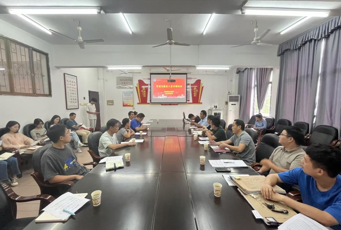 胡东以“团结、紧张、严肃、活泼”八字方针作为此次培训主题,阐明团结是凝聚力,紧张是执行力,严肃是决策力,活泼就是创造力,并辅以鲜活的实例解析了四力之间的内涵关系,着重分析了管理及服务人员如何自身定位及服务学院建设。他充分肯定学院教育管理服务队伍的积极贡献和重要价值,指出学院教育管理服务改革当中存在的主要矛盾,即学院对新质生产力发展的迫切需求和较为落后的教学及科研组织关系之间的矛盾。他对全体坐班制人员提出了三点要求:一是锚定一个任务,即立德树人;二是坚持两个侧重,即侧重服务教师,侧重服务学生;三是稳定三个坚持,即坚持搞好团结,坚持不推诿扯皮,坚持提高效率及质量,同时期望全体干部职工能够以此次培训为契机,在培训中提升,在学习中成长,在交流中互鉴,在思考中增智,提升服务意识,夯实能力本领,干出精彩成绩,为学院高质量内涵式发展持续注入宝贵增量、创新活力和干事动力。