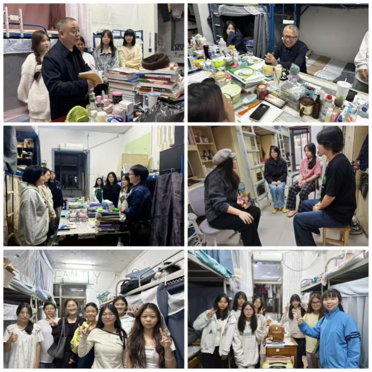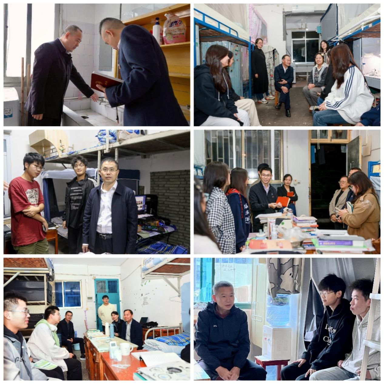 10月19日晚,校领导、中层干部及党员教师深入学生寝室开展“暖心服务进宿舍,排忧解难助成长”三联系专项活动。