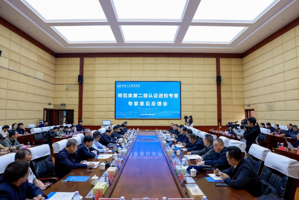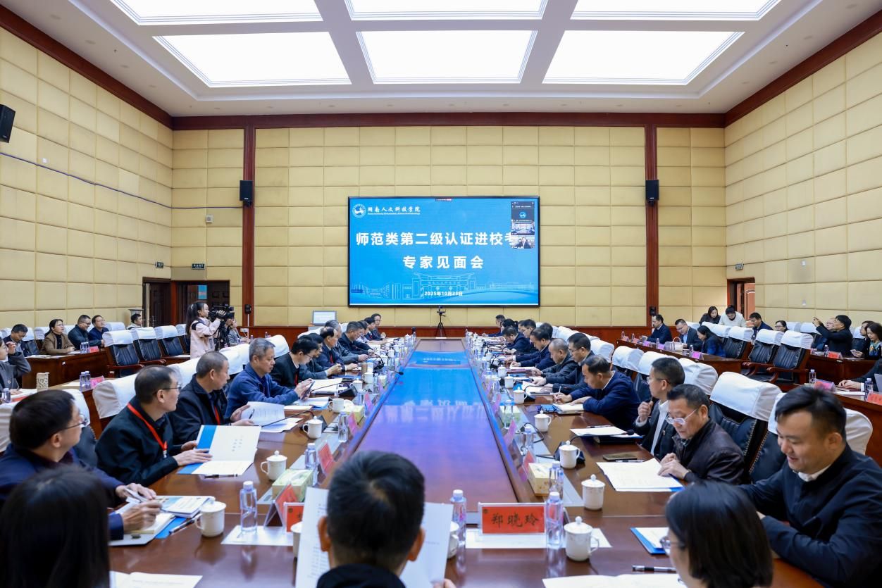见面会分为两个阶段。第一阶段由党委委员、副校长谭峰亮主持。会上,校党委副书记、校长盛明科对专家组的到来表示热烈欢迎,并介绍学校教师教育建设情况。缪高勇简要介绍了湖南省师范教育情况,要求学校认真做好认证工作,全面展现办学特色与成果,以认证为契机总结经验、查找短板,强化"学生中心、产出导向、持续改进"理念,提升专业人才培养能力。
