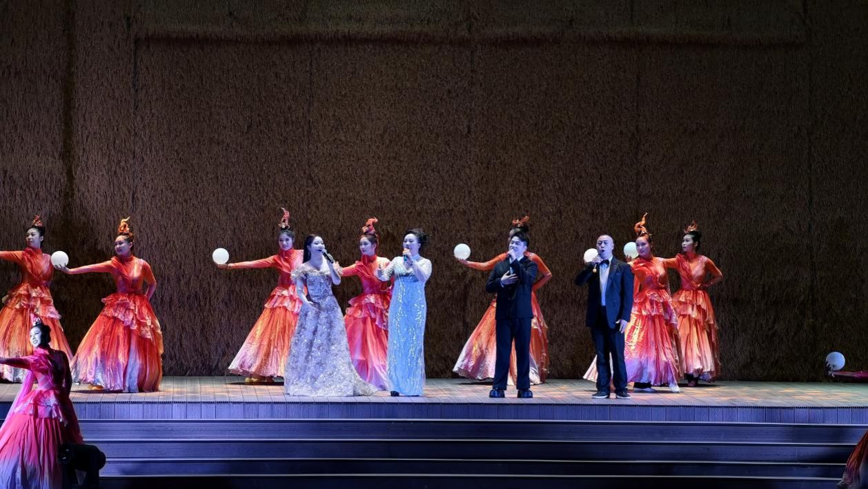 晚会在湖南人文科技学院音乐舞蹈学院筝乐团带来的古筝合奏《山丹丹开花红艳艳》中拉开序幕,激昂的琴音回荡在红色热土上空,瞬间点燃了现场观众的热情。《毛主席的话儿记心上》以深情婉转的歌声,重温了革命年代信仰如炬的峥嵘岁月;《红旗飘飘》则用澎湃激昂的旋律,唱出了新时代中华儿女的自豪与骄傲;女声小组唱《映山红》以细腻的和声,再现了乡亲们"夜半三更盼天明"的深切守望;女声二重唱《是妈妈是女儿》温情脉脉,将母爱主题与开慧先烈的深沉大爱巧妙融合,令无数观众动容;现代舞《红棉在守望》则以刚劲优美的舞姿,讴歌了木棉般坚韧不拔的奋斗精神;《十送红军》饱含深情,重现了军民鱼水情深的感人场景;歌伴舞《灯火里的中国》以繁华璀璨的视听画卷,展现了新时代山河无恙、国泰民安的盛世景象。