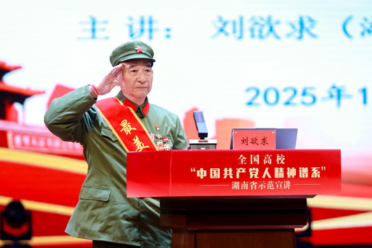 宣讲会上,中国船舶科学研究中心所长叶聪,以我国载人深潜事业从“蛟龙”号到“奋斗者”号的发展历程为脉络,生动诠释“严谨求实、团结协作、拼搏奉献、勇攀高峰”的载人深潜精神,彰显科技工作者的报国担当;湖南省“最美退役军人”刘欲求结合亲身经历,深情讲述军人不畏牺牲、忠诚卫国的初心使命,号召青年学子传承红色基因、勇担时代责任;复旦大学原党委书记焦扬系统阐述了中国共产党人精神谱系的历史源流、鲜明特征与核心内涵,深入分析了精神谱系在高校立德树人、培育时代新人中的重要意义与实践价值。
