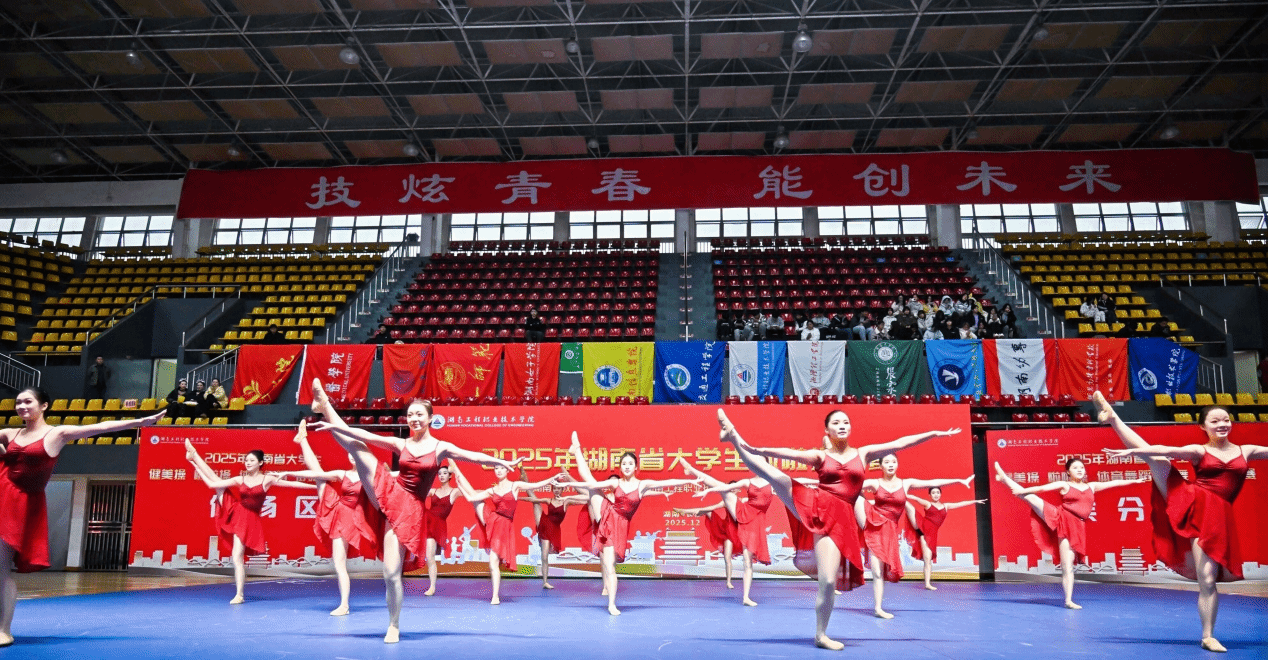 本次比赛由湖南省教育厅主办,湖南工程职业技术学院承办,湖南省学生体育协会协办,是湖南省高校啦啦操项目最高水平赛事吸引了来自全省60余所高校的高水平队伍同台竞技。我校啦啦操队在教练员唐太文、肖双婧、刘仲春的精心指导下,历经数月刻苦训练,从动作编排、音乐选配到整体表现力均精益求精。比赛中,队员们以整齐划一的动作、富有张力的节奏把控和青春洋溢的舞台感染力,展现了我校学子昂扬向上的精神风貌与扎实的专业素养,赢得了评委和观众的一致好评。