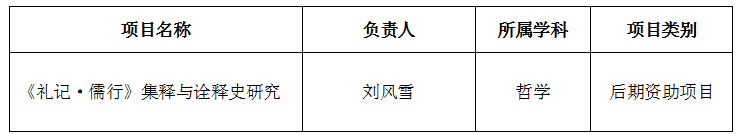近日,我校马克思主义学院刘风雪副教授申报的《〈礼记·儒行〉集释与诠释史研究》成功获批2025年国家社科基金后期资助项目。