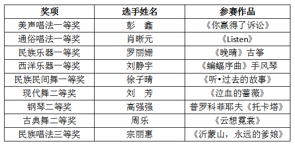 近日,湖南省第十三届本科院校音乐舞蹈专业学生独唱、独奏、独舞比赛获奖名单正式揭晓。我校学子共荣获省级奖项9项,一等奖5项、二等奖3项、三等奖1项,在获奖等级和数量上均取得历史性突破,位居全省同类地方院校前列。
