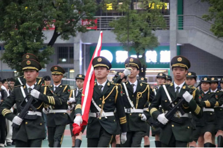 伴着金秋晨风,仪式正式启动。在“迎国旗”指令下,国旗护卫队迈着铿锵步伐护送国旗入场,全体师生肃立行注目礼。国歌奏响,五星红旗冉冉升起,嘹亮歌声中满含信息学子对祖国的崇敬与赤诚。