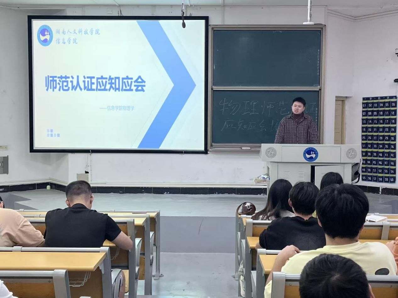 为推进师范类专业认证工作,帮助学生掌握认证核心知识,湖南人文科技学院信息学院于2025年10月10日至15日,面向物理学专业师范生开展师范认证应知应会培训,并于10月16日组织专项考核。