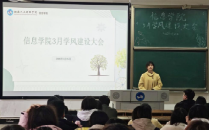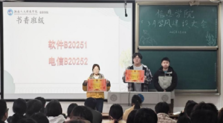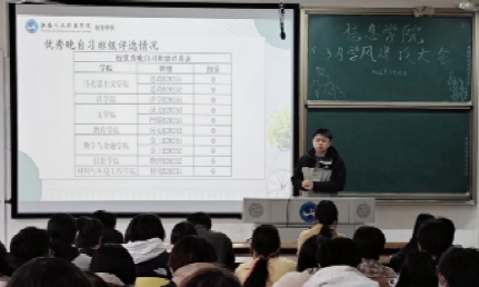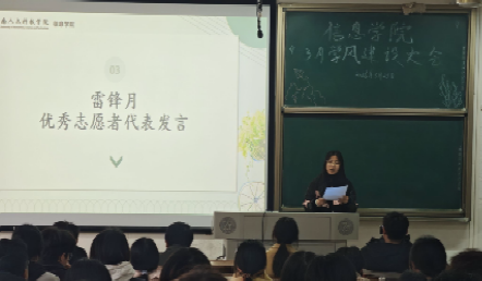 为深入推进党建引领学风建设走深走实,表彰先进树立榜样,同时弘扬雷锋志愿服务精神,引导学生以实际行动践行青年担当,3 月 25 日,信息学院在百全楼 103 教室召开 3 月学风建设大会暨志愿服务动员大会。学院教务办主任李湘、辅导员代鑫龙及 23-25 级各班骨干班委参会。