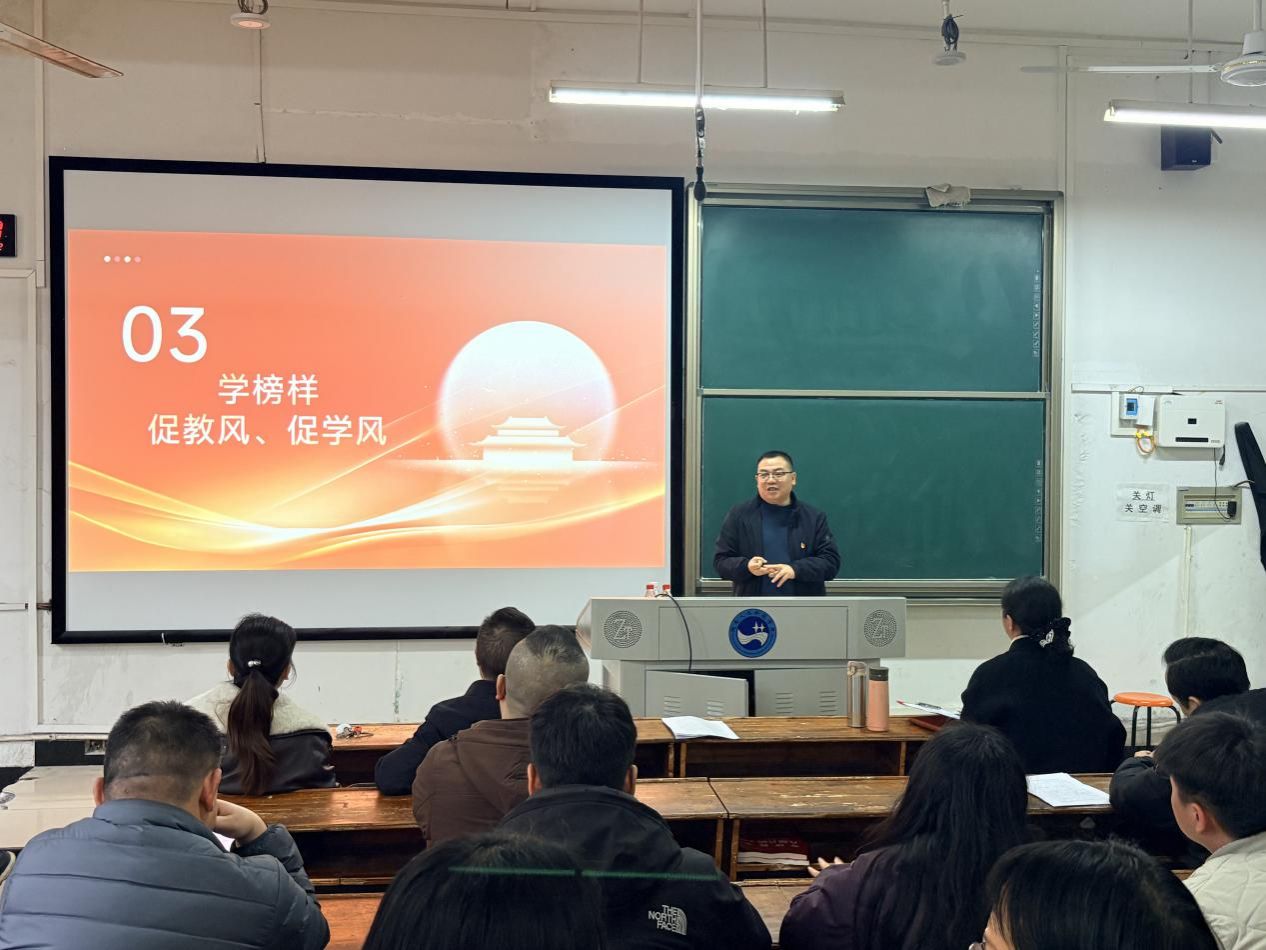 朱舒腊首先通报学院2025年度民主生活会情况,传达校领导对学院工作的整改要求。随后组织开展“树立和践行正确政绩观”政治学习,并围绕“政绩为谁而树、树什么样的政绩、靠什么树政绩”开展专题学习研讨,引导党员教师坚守正确政绩导向,践行初心使命。同时,会议通报表扬了寒假期间党员教师带头分课程开展学生学业帮扶的先进事迹,号召全体教师以榜样为引领,坚守育人初心、践行育人使命。