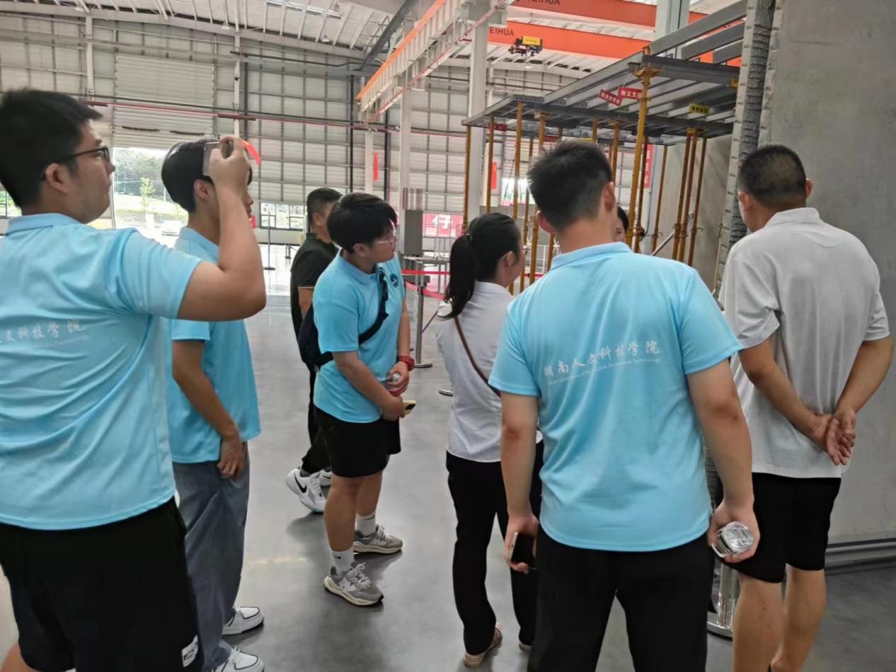 在飞地工业园,调研团一行先后参观走访了三一筑工科技(汨罗)有限公司、湖南佰力流体科技有限公司等企业,见证了数字化生产车间的高效与智能,认识了高端化、智能化、绿色化是制造业发展的重要方向。同学们还参观了最新研发的产品,通过讲解员的讲解深刻领悟了企业文化乃企业之魂,凝聚人心,更深度塑造产品品质,决定市场竞争力之高低。工业园代表李松立鼓励大学生青年挺膺担当,积极学习前沿技术,培养创新思维与实践能力,勇于投身企业一线,用科技力量助力企业转型升级,为推动高质量发展注入青春活力。
