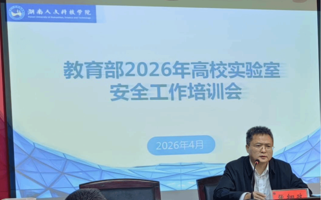 4月23日上午,教育部科学技术与信息化司、高等教育司以线下线上相结合的方式组织召开2026年高校实验室安全工作培训会。我校在明德楼505会议室设分会场集中收看。副校长张细政出席并讲话,各教学单位分管实验(实训)室的副院长及实验室主任、实验室管理员及部分教师代表参加。会议由教务处处长刘浩主持。