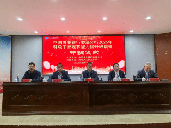11月17日,由湖南人文科技学院承办的中国农业银行娄底分行党员干部能力提升培训班在涟源市博盛红色实训基地顺利开班。中国农业银行娄底分行相关领导,湖南人文科技学院党委委员、副校长陈勇,继续教育学院院长郑秀星,项目负责人李玲军出席开班仪式。来自全市各区县的农行党员干部参加此次培训。开班仪式上,陈勇致欢迎词,他简要介绍了湖南人文科技学院的基本情况、专业特色以及在人才培养、科学研究等方面取得的突出成绩,强调此次培训对提升党员干部能力素养、...