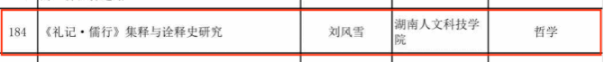 近日,我校刘风雪副教授申报的《〈礼记·儒行〉集释与诠释史研究》成功获批2025年国家社科基金后期资助项目。