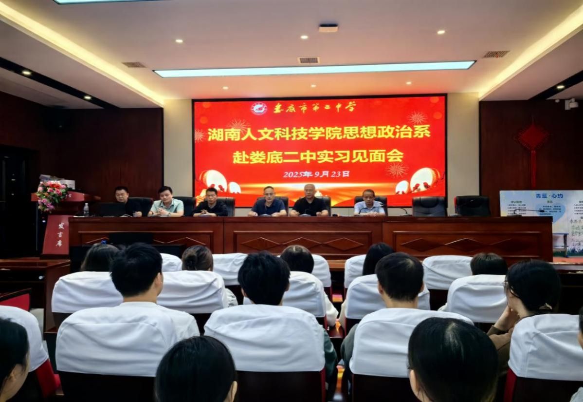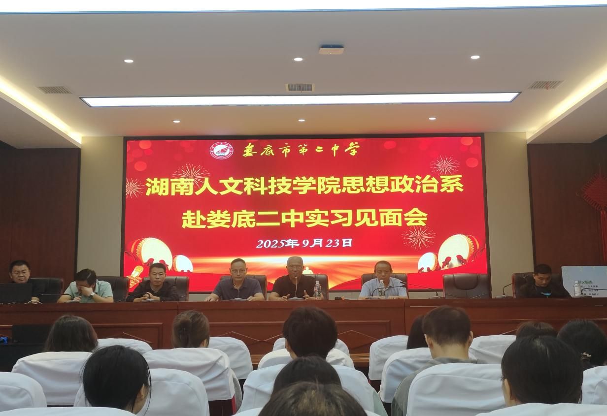 9月23日上午,湖南人文科技学院马克思主义学院思想政治教育专业22级部分学生赴娄底二中实习见面会在娄底二中第二会议室举行。马克思主义学院成赛军副院长和娄底二中危泽南副校长,二中办公室主任、政教主任以及指导老师和马克思主义学院学生等28人参加会议。