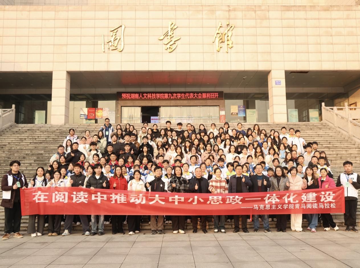 12月20日,“青马阅读马拉松”活动在湖南人文科技学院若谷楼举行。本次活动由湖南人文科技学院学生工作部、武装部和马克思主义学院主办,马克思主义学院青马读书会和学院学生党支部承办,娄底三中窗外文学社协办,并特邀娄底市第二中学、第三中学、第八中学的师生代表共同参加。马克思主义学院党总支书记张卫明、学校学生工作部、武装部部长曹宇、学院党总支副书记阳青出席。
