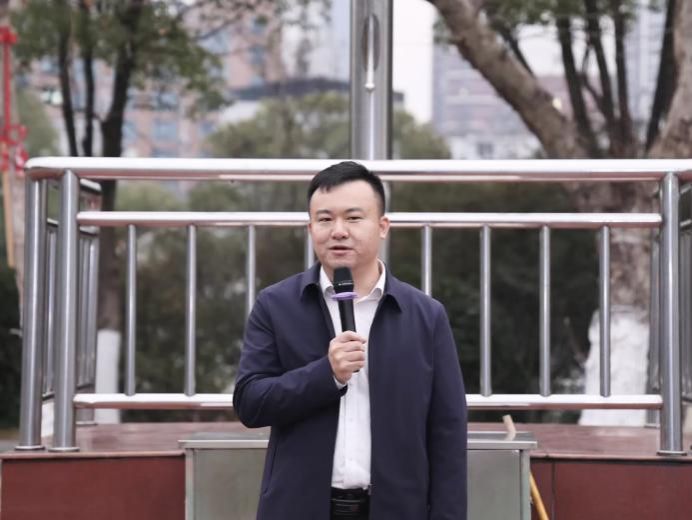 伴随着雄壮的中华人民共和国国歌,五星红旗冉冉升起。学生代表阳紫辉在国旗下讲话,倡导全体同学以书香涵养初心,勇担新时代青年使命。于意在总结讲话中,勉励全体同学将读书视为一种生活态度,将信仰视为一种行动自觉,以书香浸润青春,以信仰砥砺前行,在知行合一中展现新时代青年的实干风采。