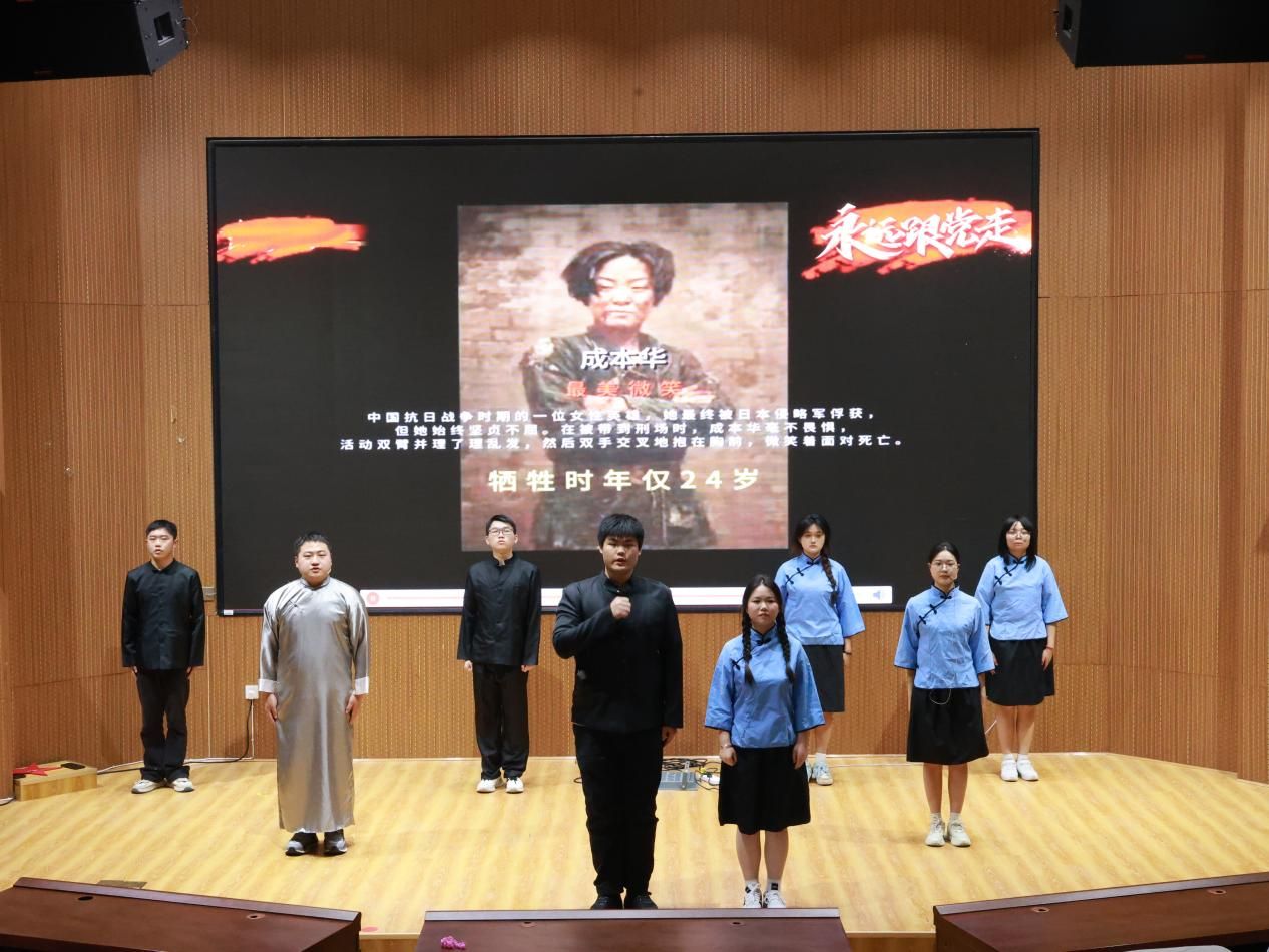 师生同台演绎红色故事、传递理想信念,将理论知识与艺术表演深度融合,打破传统课堂边界,让思政教育更具温度、深度与活力。现场师生纷纷表示,这场“舞台上的思政课”形式新颖、直抵人心,让大家在沉浸式体验中厚植了家国情怀,坚定了“强国有我,青春有为”的信念。