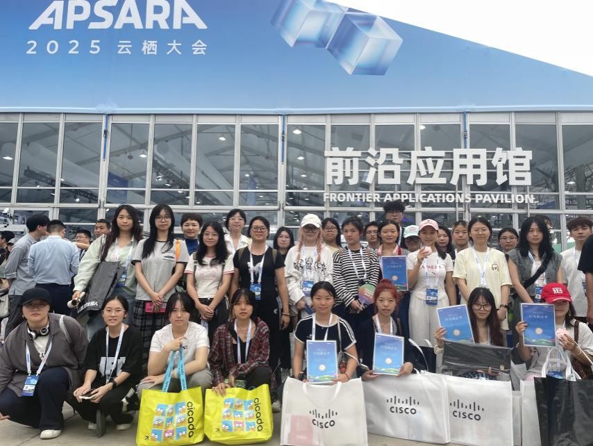 其中,杭州举办的2025云栖大会成为此次考察的亮点。作为全球顶尖的科技盛会,云栖大会汇聚了行业领军企业、科研机构和技术专家,展示了人工智能、大数据、云计算、元宇宙等前沿技术的最新成果与应用场景。在大会现场,学生们亲身体验了智能交互系统的演示、数字孪生技术的创新实践,以及基于区块链的新型应用模式等。每一项技术都让学生们深刻感受到数字媒体艺术与前沿科技融合的无限潜力。