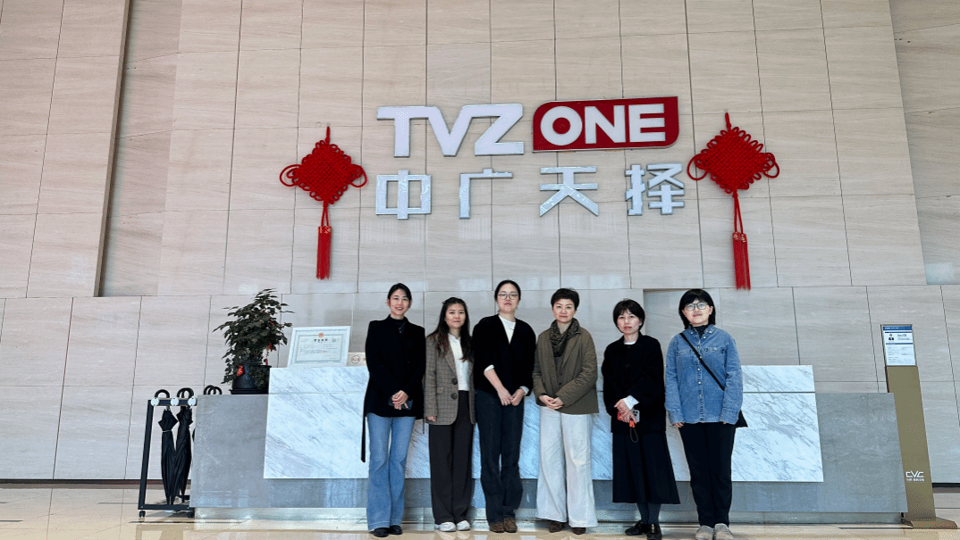 随后,团队赴中广天择传媒股份有限公司调研,参观企业展厅、融媒体演播厅及AI剪辑实验室,深入了解其在影视制作、文旅IP开发、虚拟摄制等领域的创新成果。座谈会上,双方围绕AI漫剧项目开发、交叉赋能、理论基础与实践融合等议题展开探讨。中广天择表示,愿与学院共建实习实训基地,开放AIGC设计岗位,推动学生参与真实项目,提升实战能力。