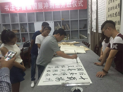 在本次讲座中,李哲老师结合自己学习书法的亲身经历对如何学好书法,怎样临摹和创作作了精彩的演讲。李哲老师旁征博引,深入浅出,不仅让大家领略到一名生活经历丰富的书法家对书法艺术独到的理解,而且使学生受到了很好的书法艺术熏陶。通过理论讲解和现场示范,李老师从书法的基本要素、书法美感、艺术传承等诸多方面为国展班的同学上了生动的一课。
