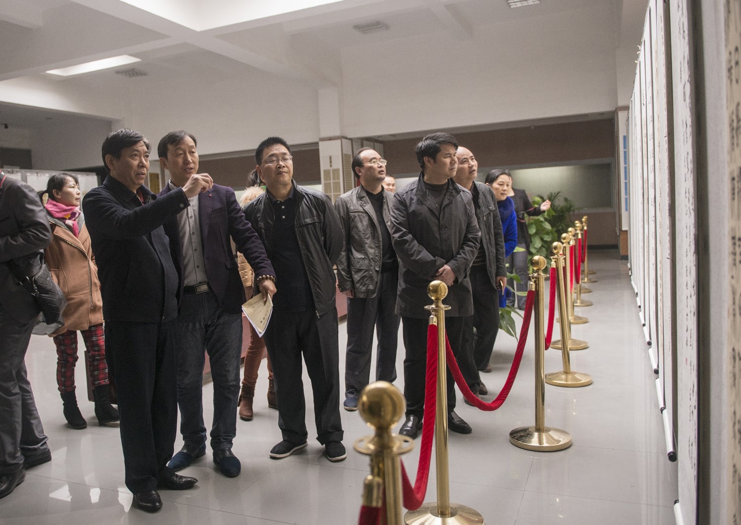 上午,党委书记郭军,党委副书记刘铁铭,副校长蒋建初、周发明、陈志国,纪委书记杨鑫铨,党委委员金志方以及校党政办、纪委、组织部、宣传部、工会、武保处、团委等单位负责人在美术与设计学院领导和老师的陪同下,参观了在美术楼展厅隆重展出的“纪念长征胜利80周年师生书法美术作品展”。