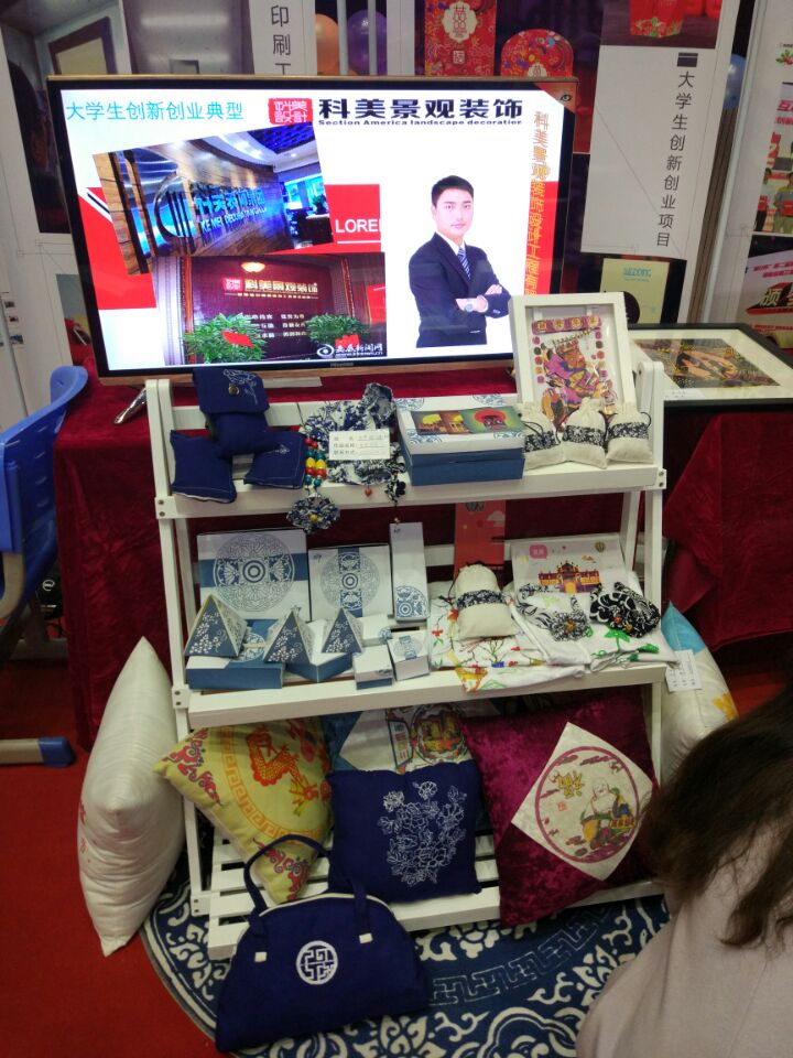 偌大的体育馆,摆满了各个院系丰硕的科技创新和创业成果,新颖、独特的展品让观展的同学们大饱眼福、大呼过瘾。美设学院展区琳琅满目的展品每年都最能吸引同学们的眼球,今年我们精选了陶艺、雕塑、布艺、建筑模型、版画等十余类作品进行了展出,种类丰富、数量庞大。同时,还按照创新创业基地、创新创业项目、创新创业导师、创新创业典型、创新创业比赛获奖等内容分类制作展出了三十余块展板。