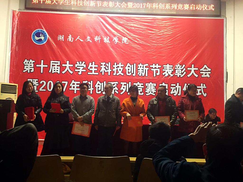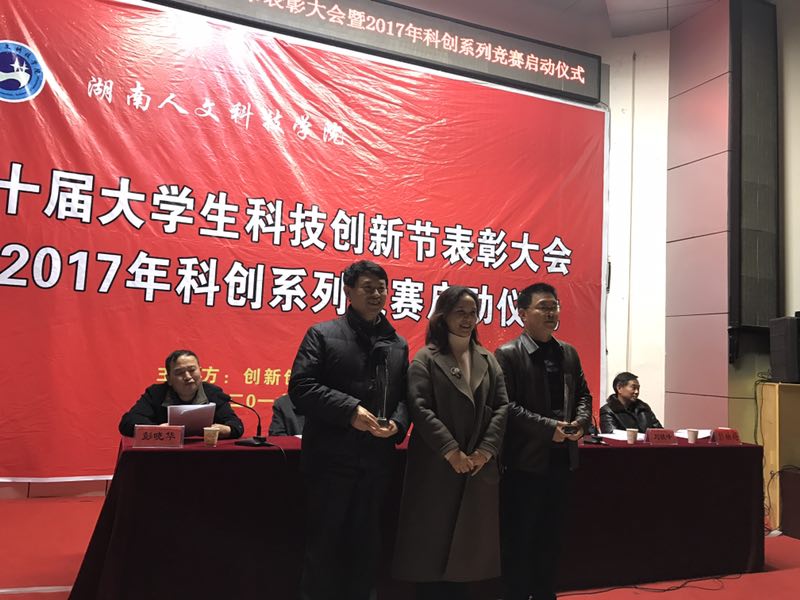 2016年12月20日晚上,学校第十届大学生科技创新节表彰大会暨2017年科创系列竞赛启动仪式在匠成楼隆重举行。我院成绩喜人,同时荣获了创业类“挑战杯”和科创工作“优秀组织奖”,七名教师被评选“优秀指导老师”。大会上,我院党总支书记李小林代表美设学院做典型发言,谭娟老师作为“优秀指导老师”代表发言。