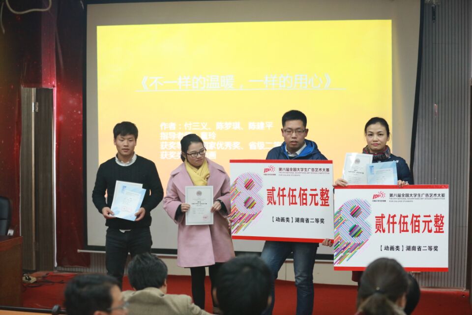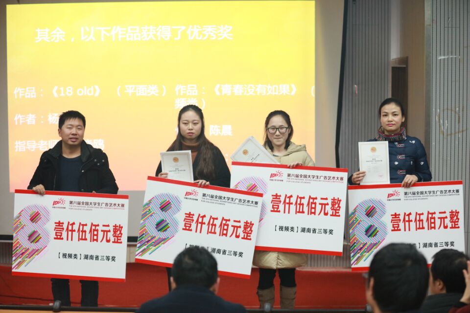 16日晚19:30,“第八届全国大学生广告艺术大赛获奖师生交流会”在美术与设计学院一楼多媒体报告厅召开。副院长陆序彦教授以及视觉传达专业师生参与了交流会。此次会议旨在激励、鼓励更多有想法、有创意的同学参与,在这个平台上有所收获,实现梦想,创造出彩人生。会议上,同学们欣赏了优秀的获奖作品并获益良多。
